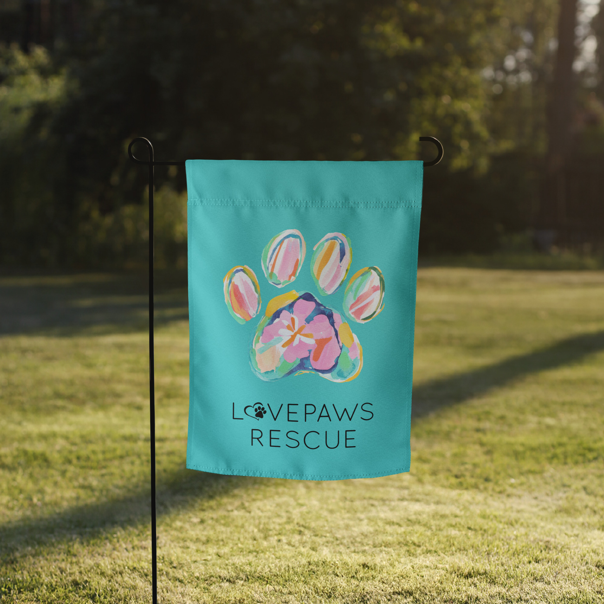 Welcome spring and summer and express your support for LOVEPAWS with this durable garden flag.
